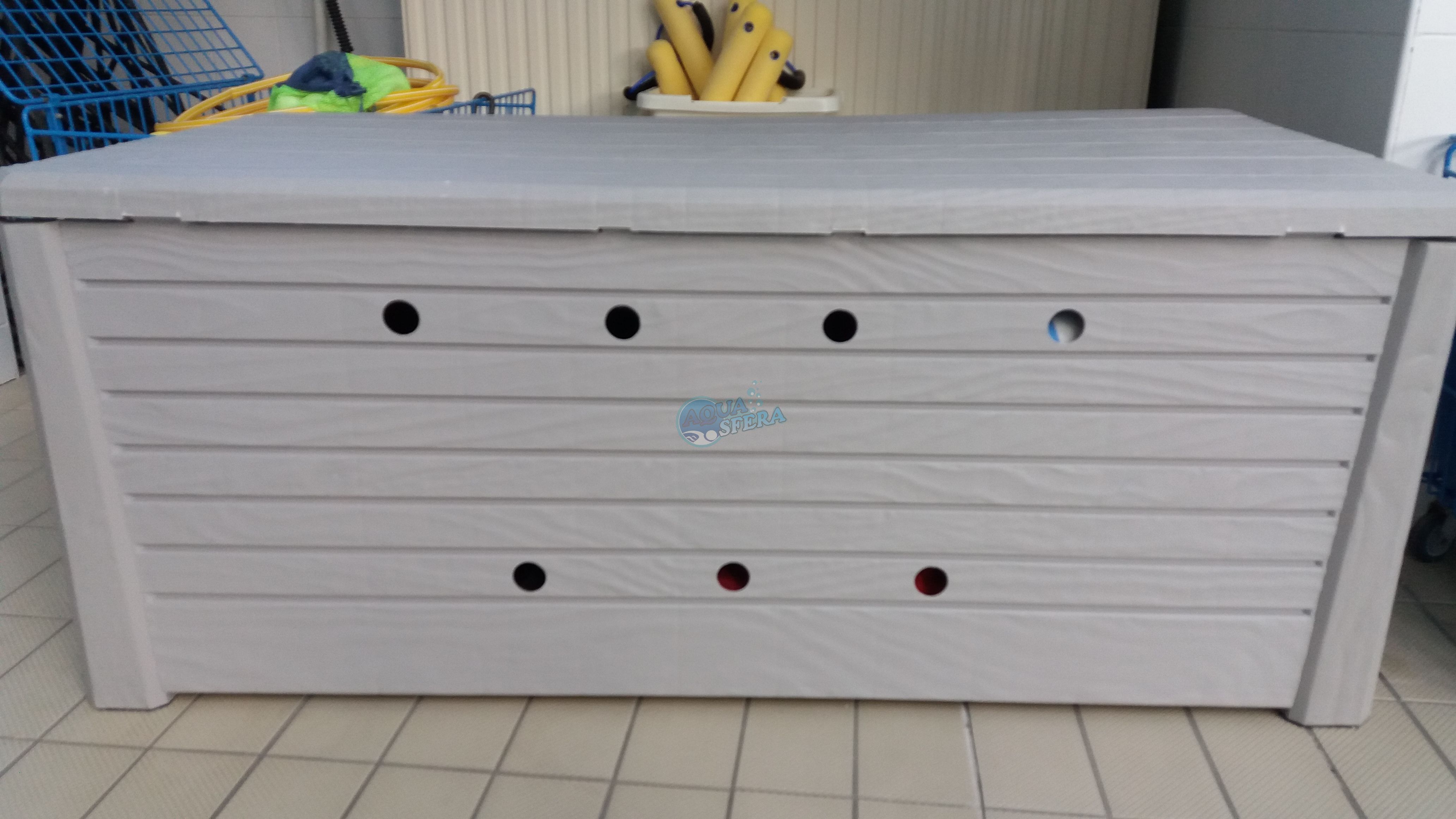 Prezentujemy funkcjonalną, bardzo pojemną i solidną skrzynię na sprzęt pływacki.